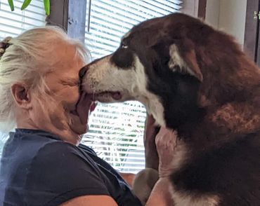 This girl is a Professional Service dog. She is taken into retirement homes to visit the elderly. She had to be trained and certified. She is a champion.